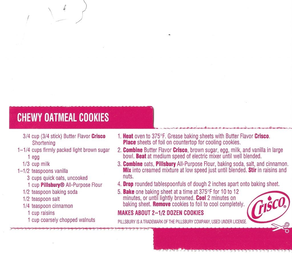 3. Combine oats, Pillsbury All-Purpose Flour, baking soda, salt, and cinnamon. Mix into creamed mixture at low speed just until blended. Stir in raisins and nuts.