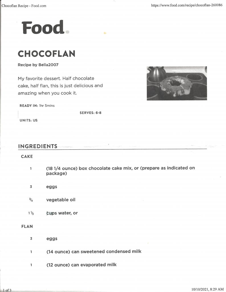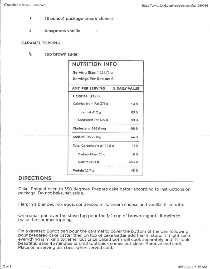 - On a greased Bundt pan pour the caramel to cover the bottom of the pan following pour prepared cake batter then on top of cake batter add flan mixture. It might seem everything is mixing together but once baked both will cook separately and it’ll look beautiful. Bake 45 minutes or until toothpick comes out clean. Remove and cool. Place on a serving dish best when served cold.